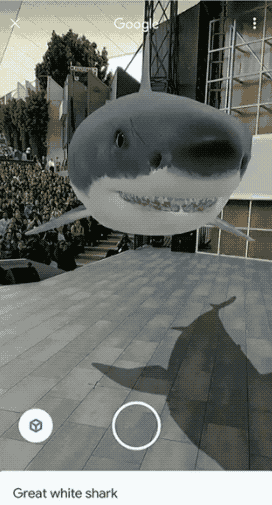 谷歌今年在 Google Search 中加入了 3D 模型和 AR 效果。现场演示中,搜索「鲨鱼」,就会出现一个逼真的 3D 鲨鱼模型。在点击 AR 选项之后,能够近距离感受鲨鱼在现实场景中的动态。