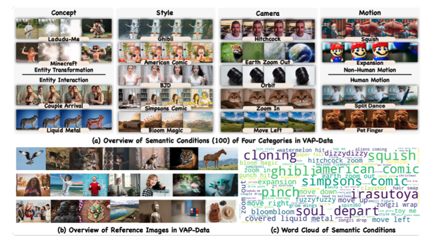 This dataset contains over 90,000 carefully curated paired samples, covering 100 fine-grained semantic conditions across four semantic categories: concept, style, action, and shot. Each semantic category includes multiple sets of mutually aligned video instances. The video content exhibits great diversity in lighting, perspective, scene, and dynamics, enabling the construction of cross-semantic, finely controlled video generation systems and providing a comprehensive evaluation environment for the model's controllability and generalization ability.