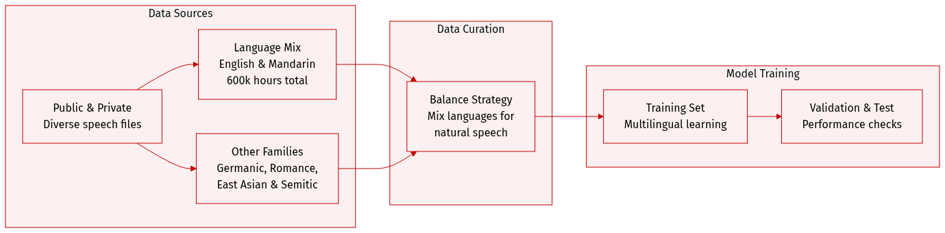 • Data Processing and Strategy: The authors implemented a careful balancing strategy across different languages. This specific distribution is designed to facilitate simultaneous multilingual learning and improve the model's ability to generate natural mixed-language content.