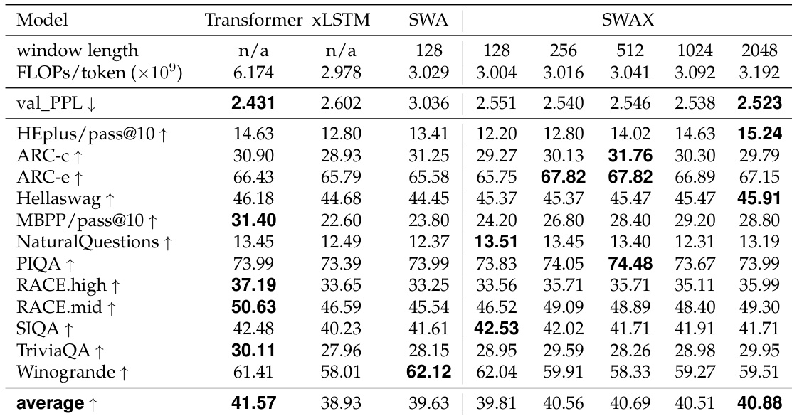 Researchers from Meta FAIR, ENS Paris Saclay, and Johannes Kepler University introduce SWAX, a hybrid architecture combining sliding-window attention and xLSTM layers, revealing that shorter windows paradoxically enhance long-context recall by forcing reliance on xLSTM’s memory, and propose stochastic window training to balance short- and long-context performance.