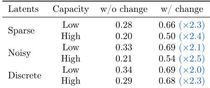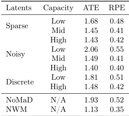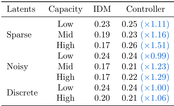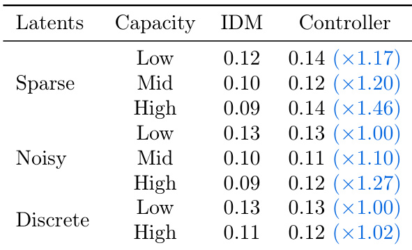 - Found that optimal performance arises from a balanced latent action capacity—too high capacity reduces transferability and generality, while too low limits expressiveness.
