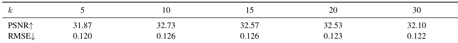 The authors evaluate the impact of multi-resolution temporal training by varying the frame subsampling interval k, finding that performance remains stable across tested values. Results show that PSNR peaks at k=10 and k=15, while RMSE stays consistently low, indicating the training strategy is robust to moderate changes in temporal resolution. This supports the use of coarse-to-fine training for stabilizing long-horizon simulation without requiring precise tuning of the subsampling rate.
