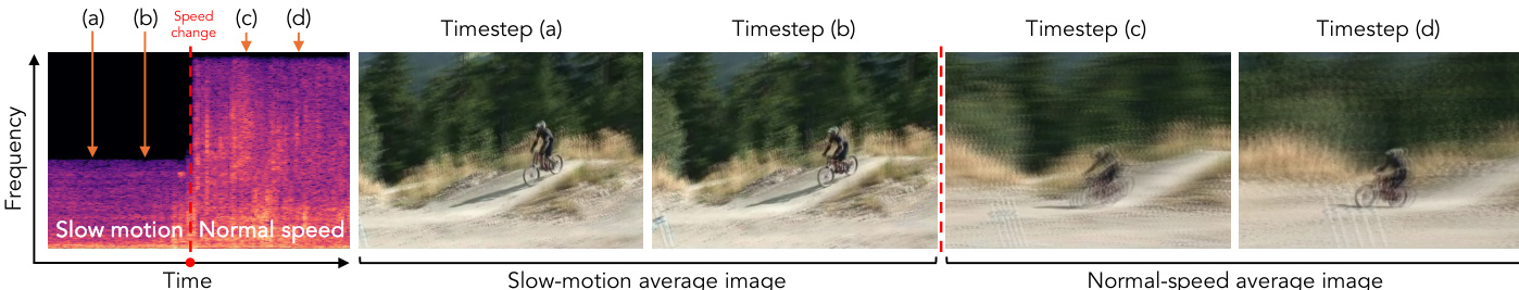 The researchers evaluate their approach through a series of experiments designed to validate temporal speed perception and manipulation. They first benchmark a speed-change detector and a playback-speed estimator, demonstrating that their self-supervised methods achieve high accuracy and closely approximate human perception. Using the newly curated SloMo-44K dataset, the study further validates models for speed-conditioned video generation and temporal super-resolution, showing that these models can synthesize lifelike motion at controllable speeds and reconstruct sharp, high-frame-rate sequences even from motion-blurred inputs. Overall, the findings suggest that leveraging high-frame-rate data and cross-modal cues enables superior modeling of real-world physical dynamics compared to existing methods.