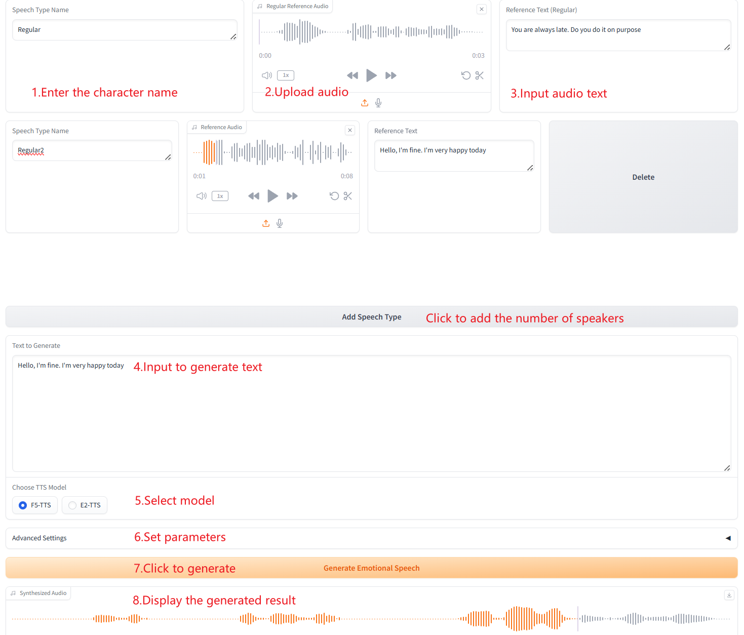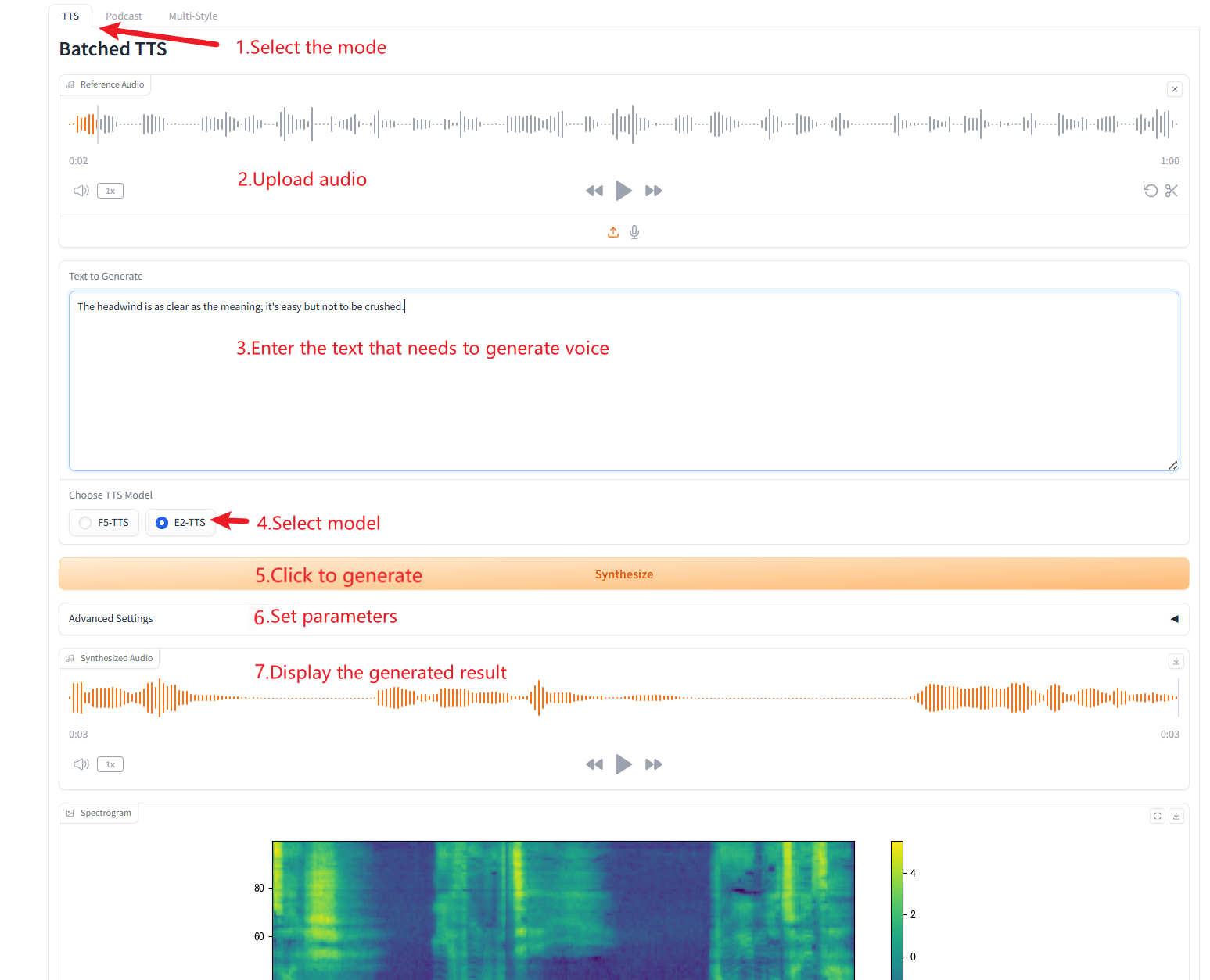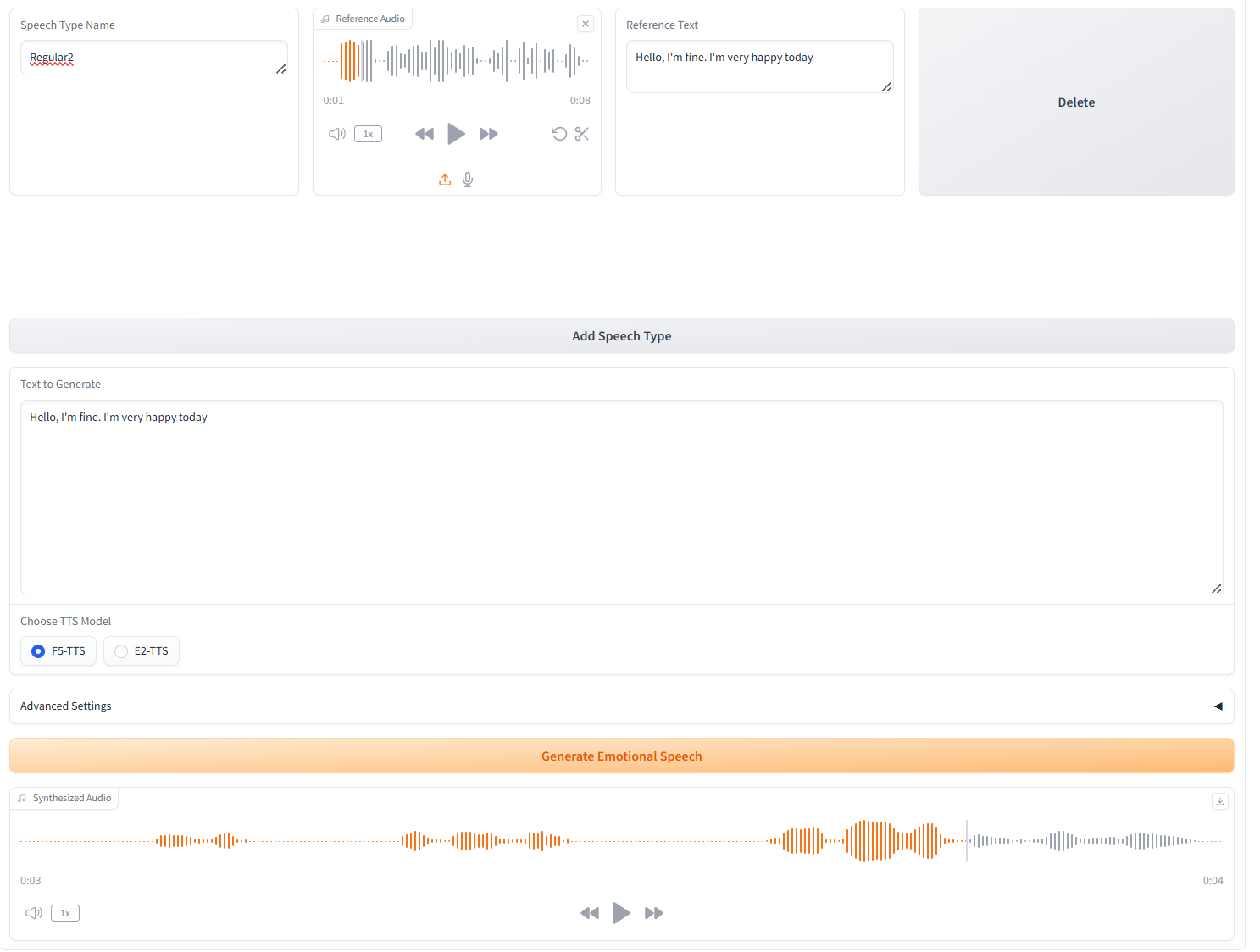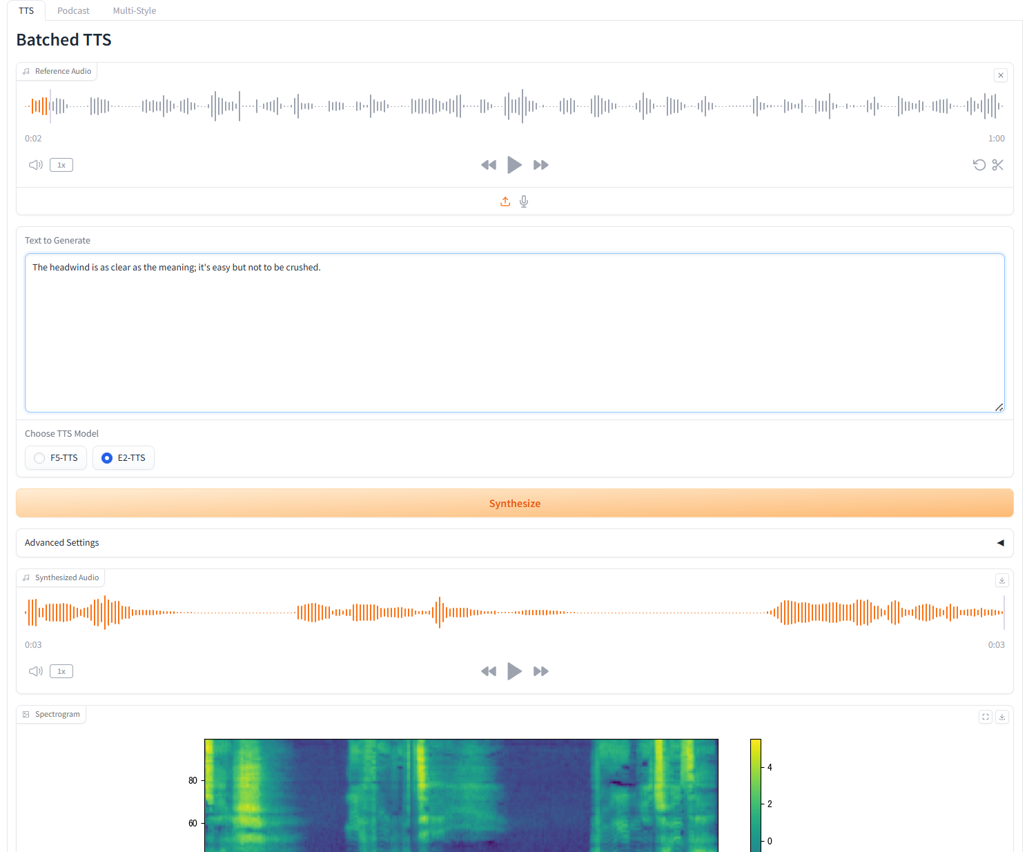 This tutorial includes two demos of the models, F5-TTS and E2 TTS.