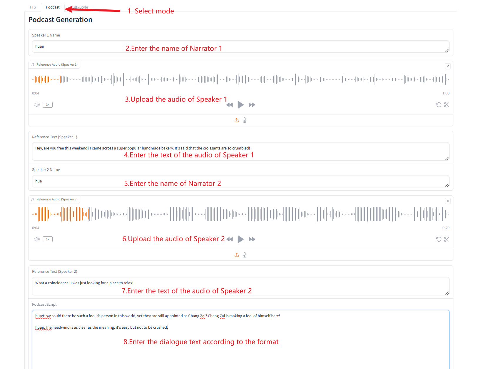 - Reference Text: Leave blank to automatically transcribe the reference audio. If you enter text, it will override the automatic transcription.