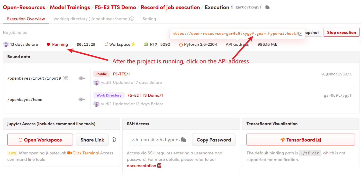 该教程支持如下模型和功能: 2 个模型检查点: F5-TTS E2 TTS 3 个功能:单人语音生成(Batched TTS): 根据上传的音频进行文本生成。 双人语音生成(Podcast Generation):根据双人音频模拟双人对话。多种语音类型生成(Multiple Speech-Type Generation):可根据同一讲话人不同情绪下的音频,生成不同情绪的音频。