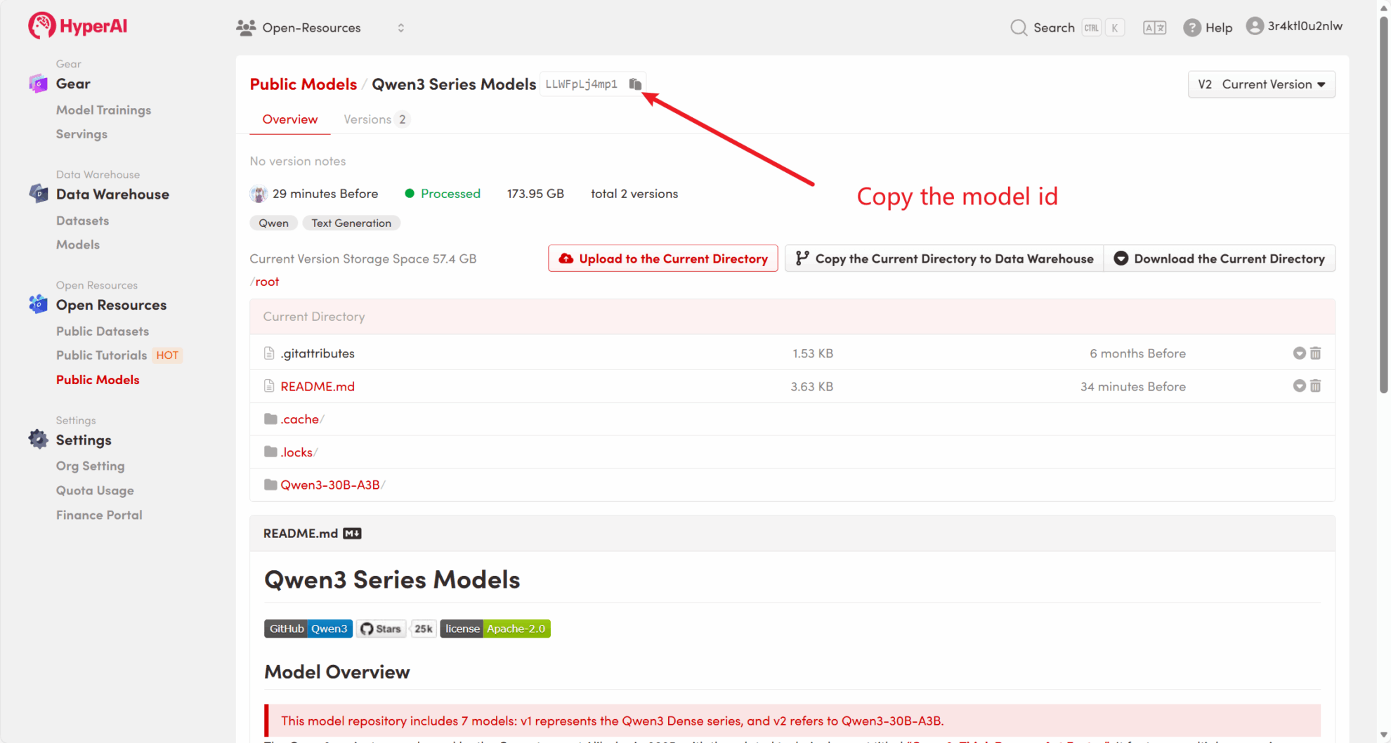 For example, the platform has stored Qwen3 Series model. The following are the steps for binding the model (this tutorial has already bound this model).