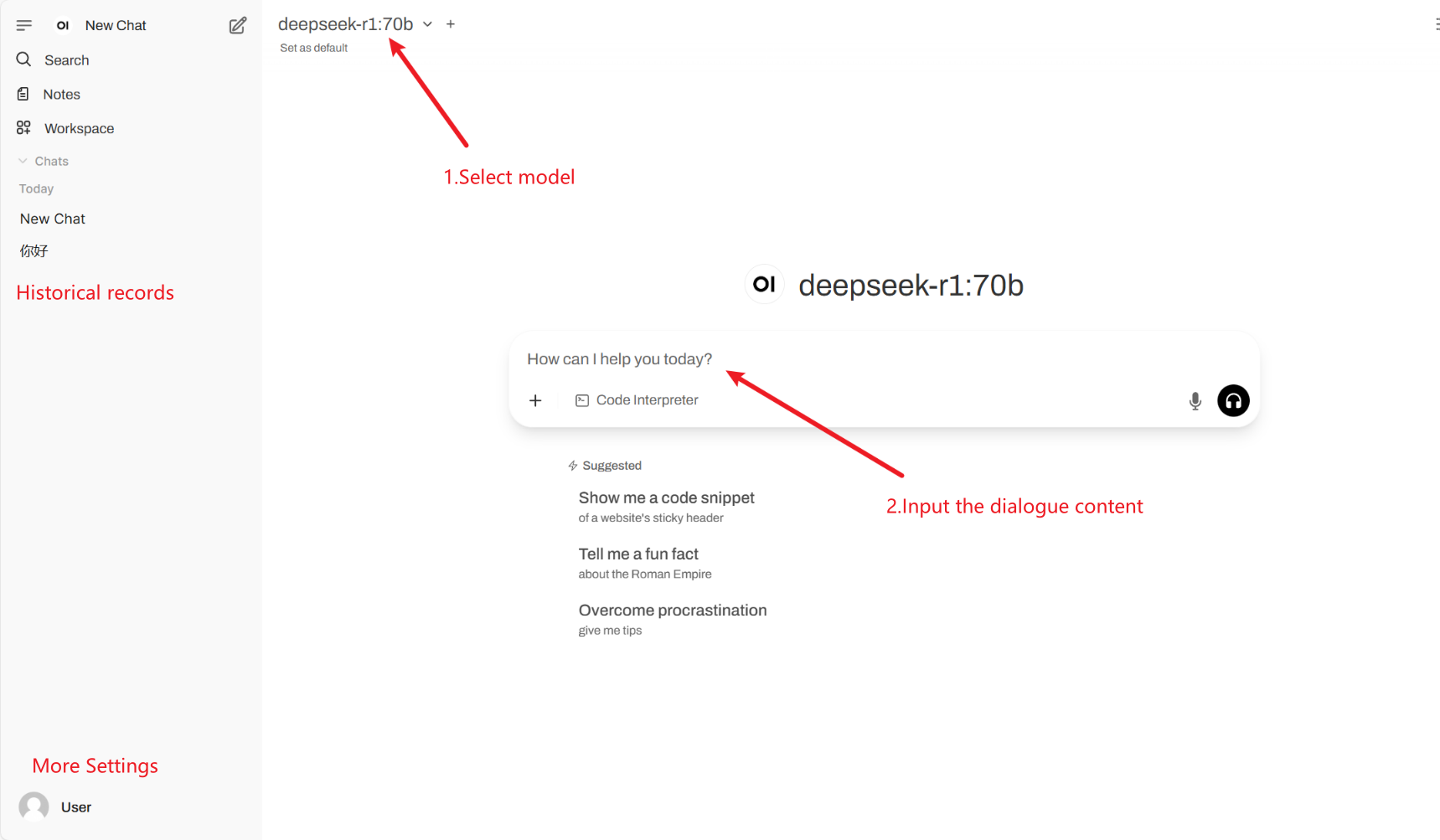 本教程使用 Ollama + Open WebUI 部署 DeepSeek-R1-Distill-Qwen-70B 作为演示,算力资源采用「单卡 A6000」。