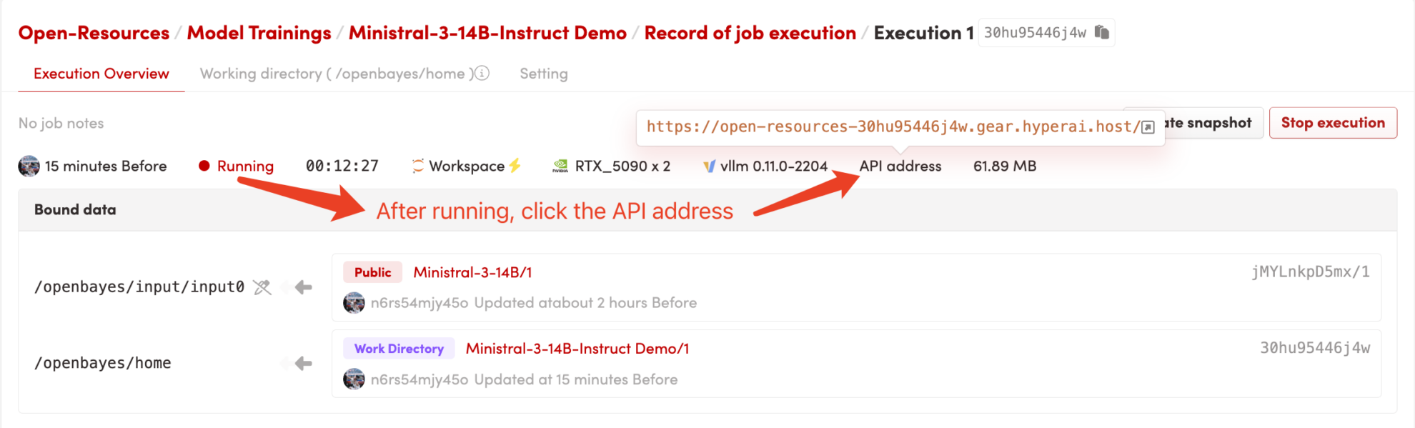 1. After starting the container, click the API address to enter the Web interface